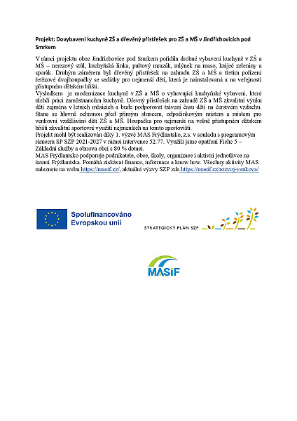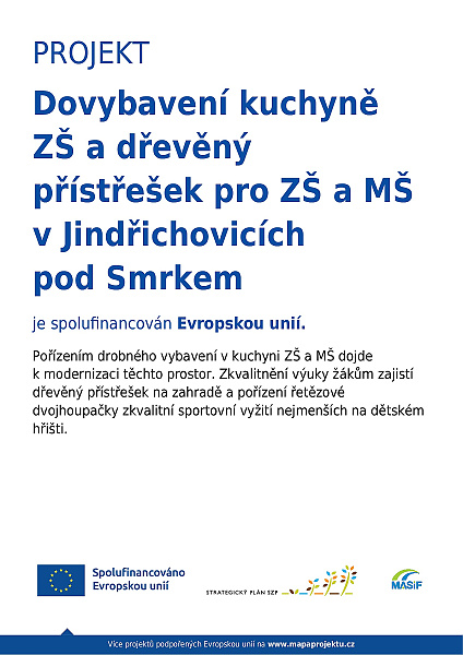 Projekt: Dovybavení kuchyně ZŠ a dřevěný přístřešek pro ZŠ a MŠ v Jindřichovicích pod Smrkem