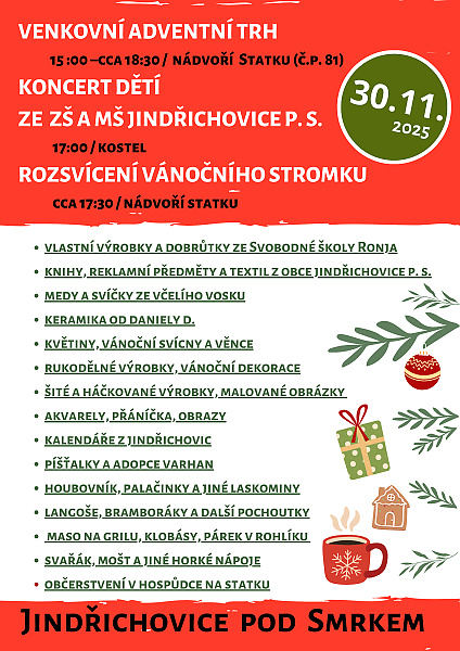 Rozsvícení stromku, adventní trh a koncert v kostele