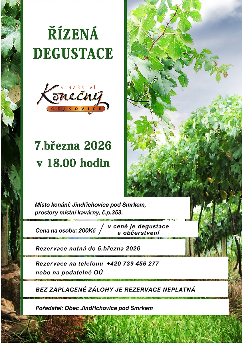 Rezervace: nutná do 5. března, na telefonním čísle: +420 739 456 277, nebo v kanceláři OÚ Jindřichovice pod Smrkem.